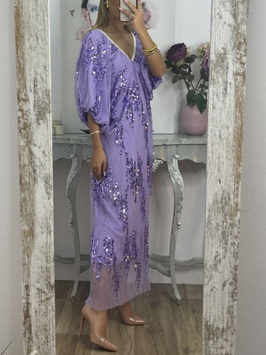 Elegant V-Neck Sequin Maxi Dress