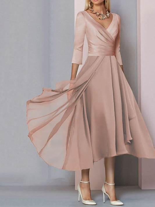 SaleLight Pink Pleated ¾ Sleeve A-Line Maxi Dress