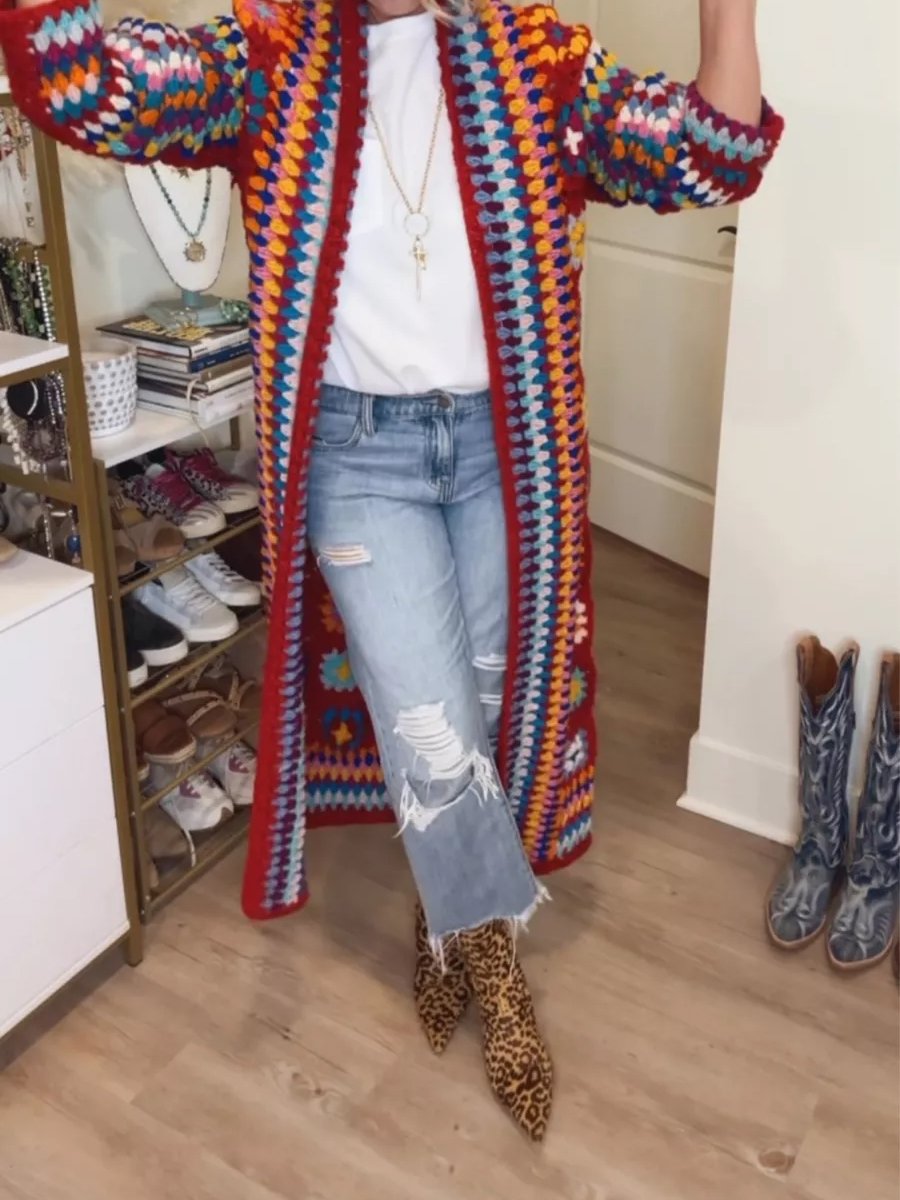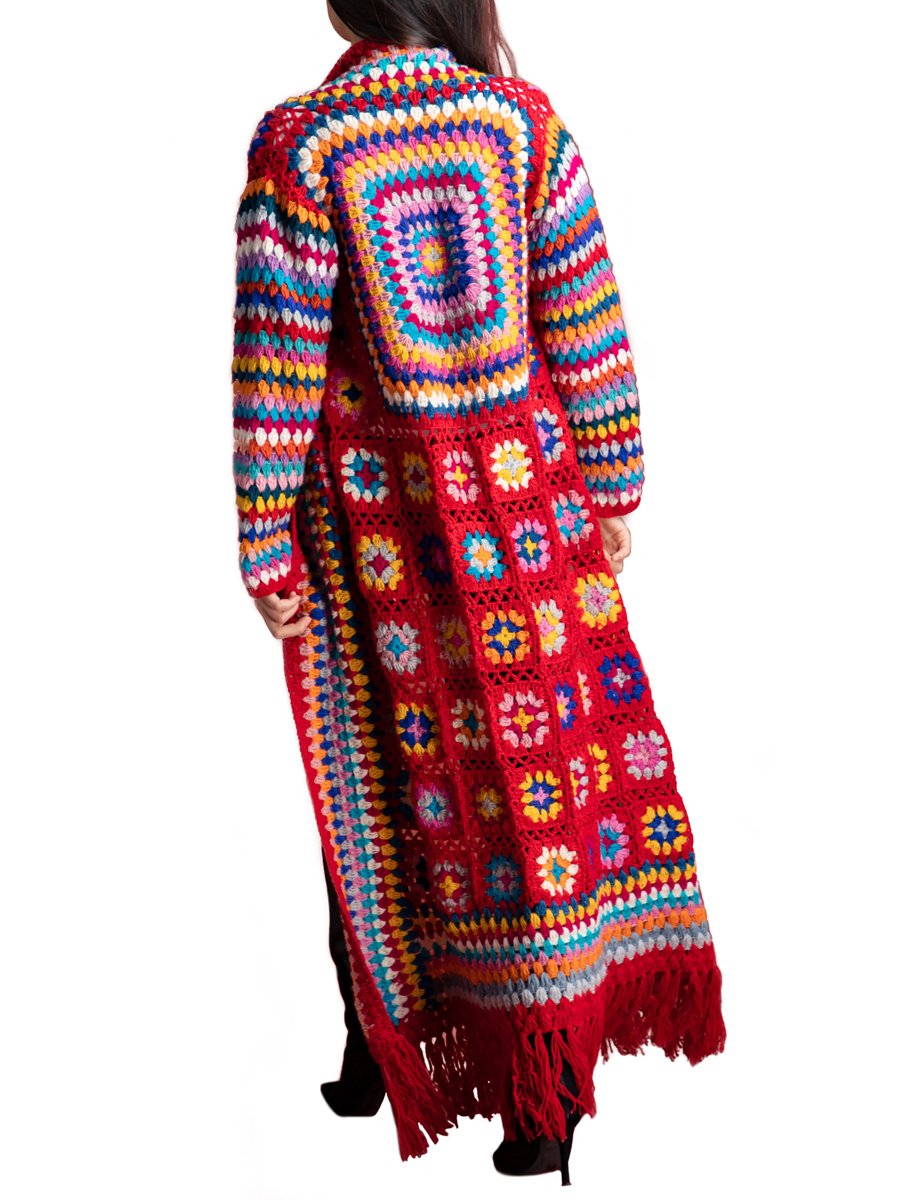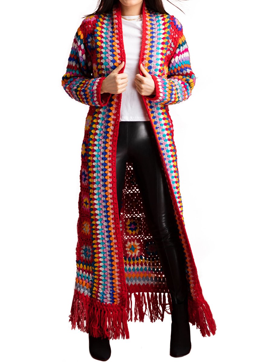 Crochet Patchwork Fringe Shawl Cardigan