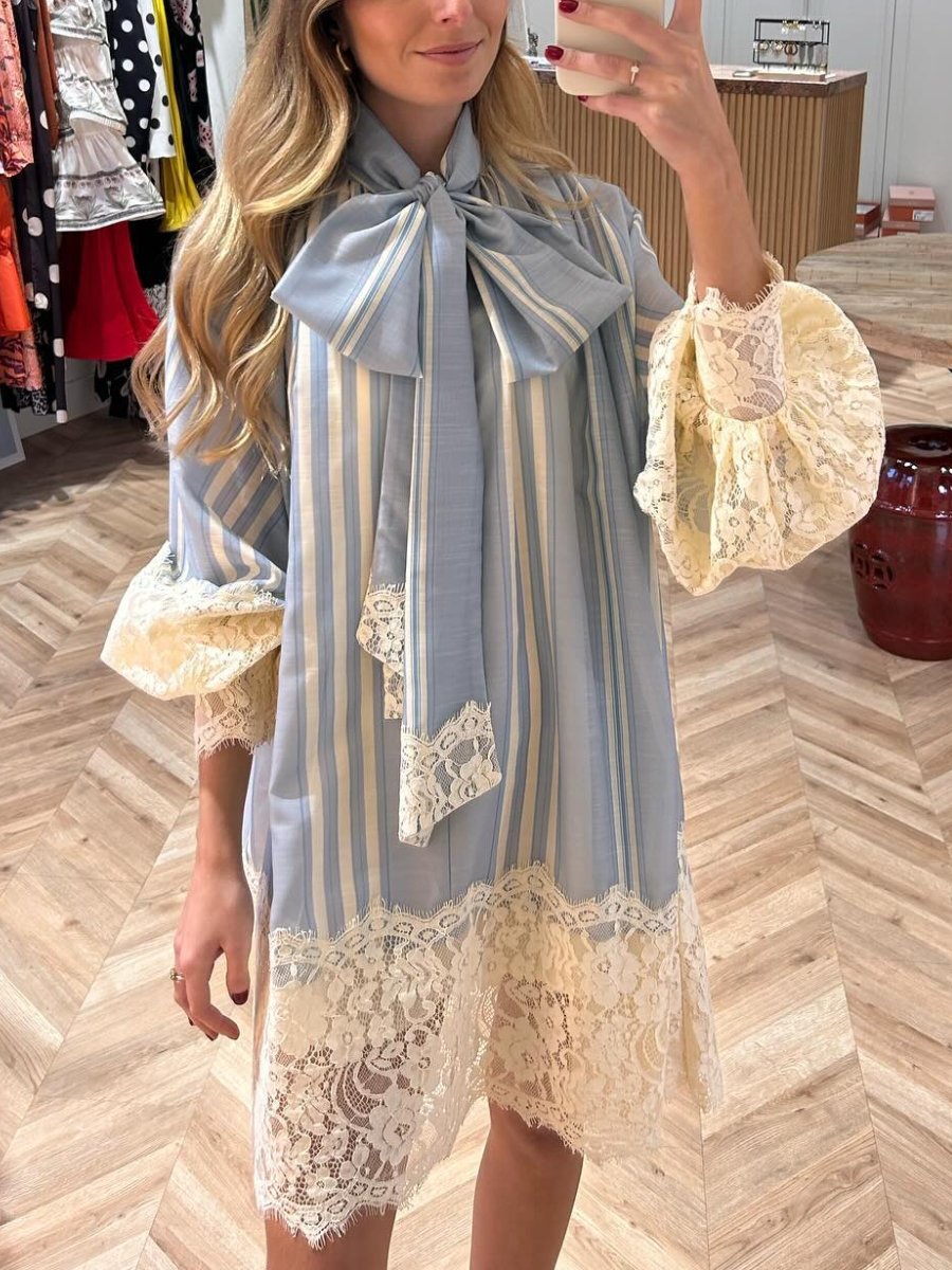 Elegant Bow Collar Lace Mini Dress