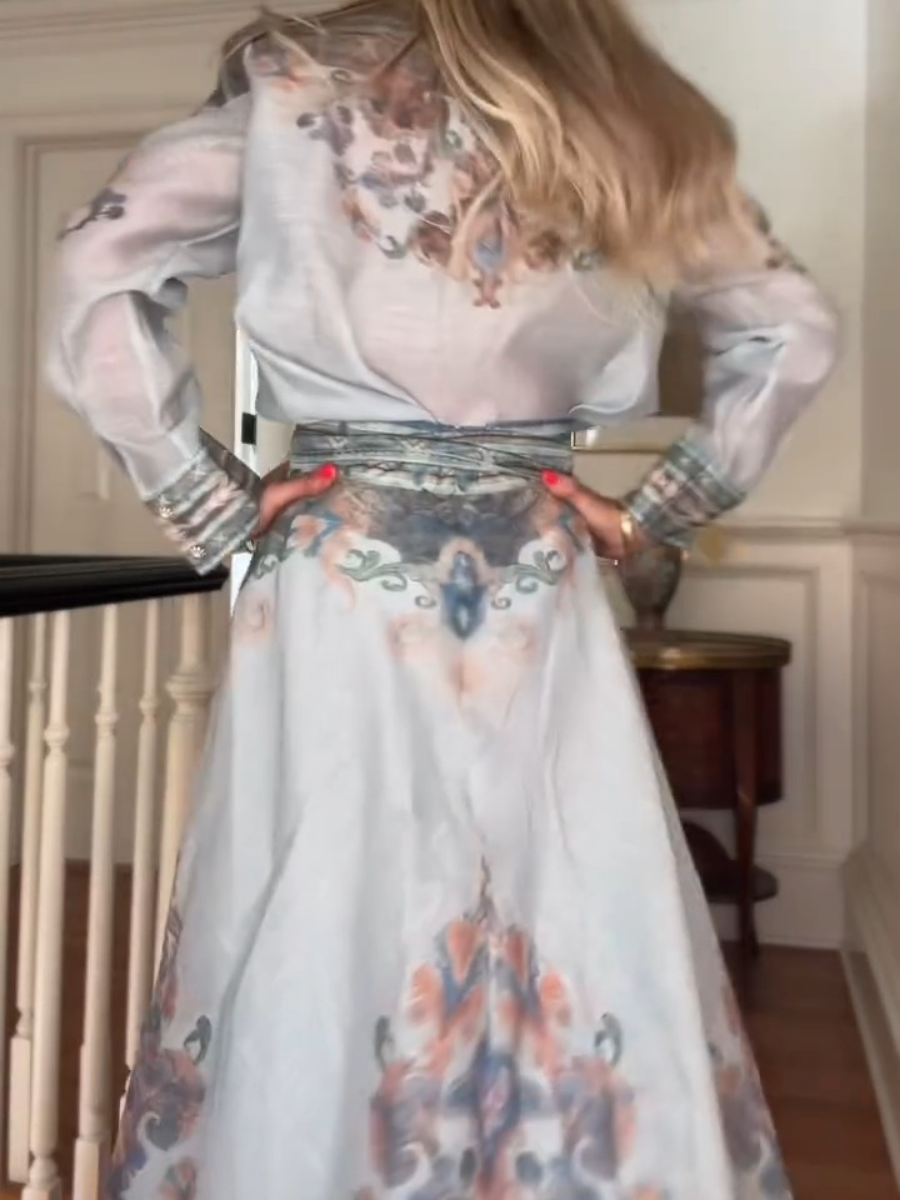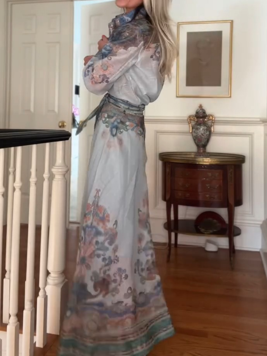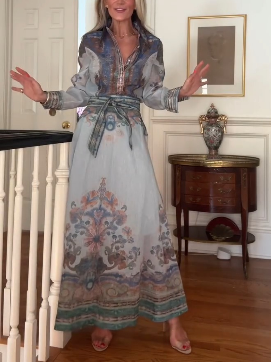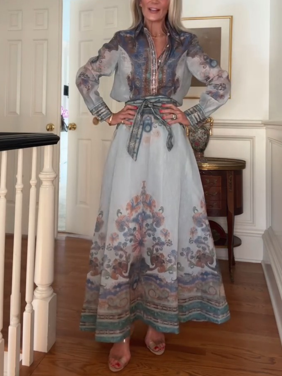 Elegant Shirt Two-piece Blue Print Dress
