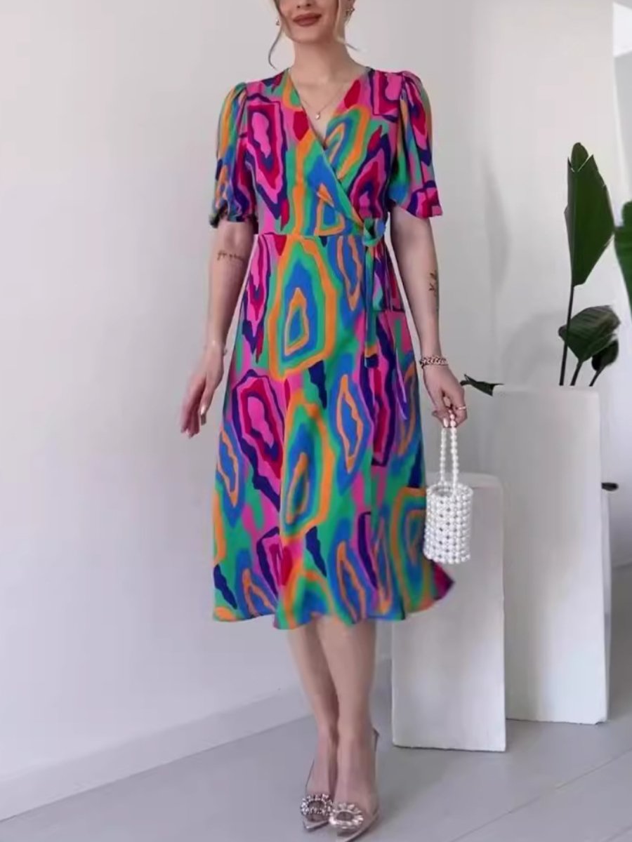 Fashion Printed Casual V-neck A-Line Dress