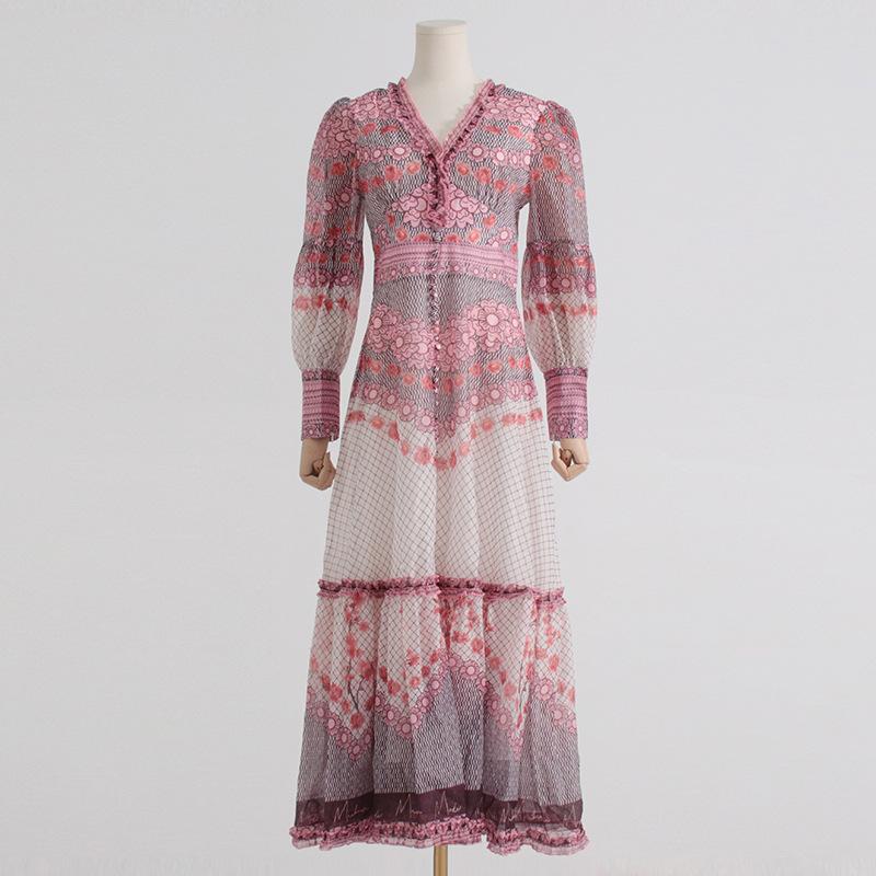 Splicing Print V-neck Dress